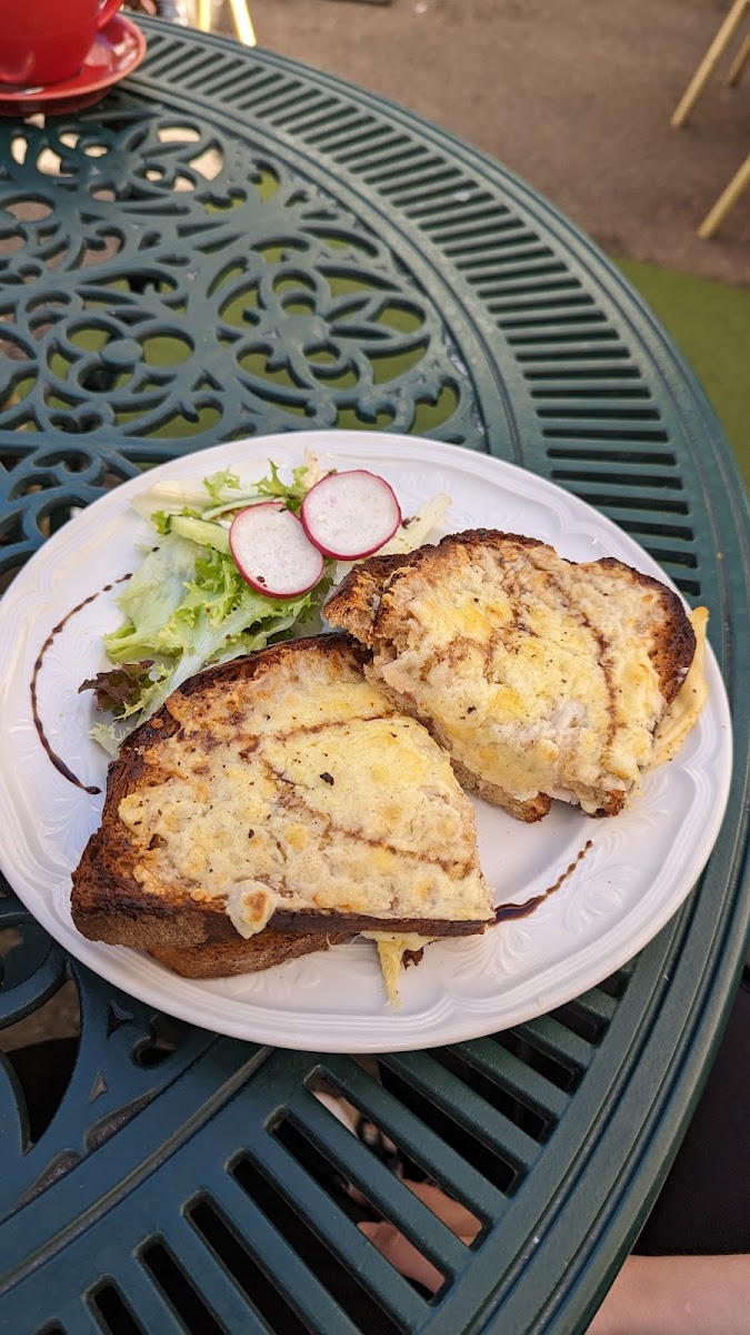 Came for lunch with a friend and sat in the pretty courtyard basking in a rare moment of sunshine. I consider myself a bit of a coffee snob and I can safely say it was really good. The waitress was very friendly and attentive. I had the croque monsieur with fries and my friend had the sweet corn fritters. Food came in good time and it all tasted really fresh and delicious. This is very much a hidden gem and I will most definitely be returning and telling friends about it! Thank you.